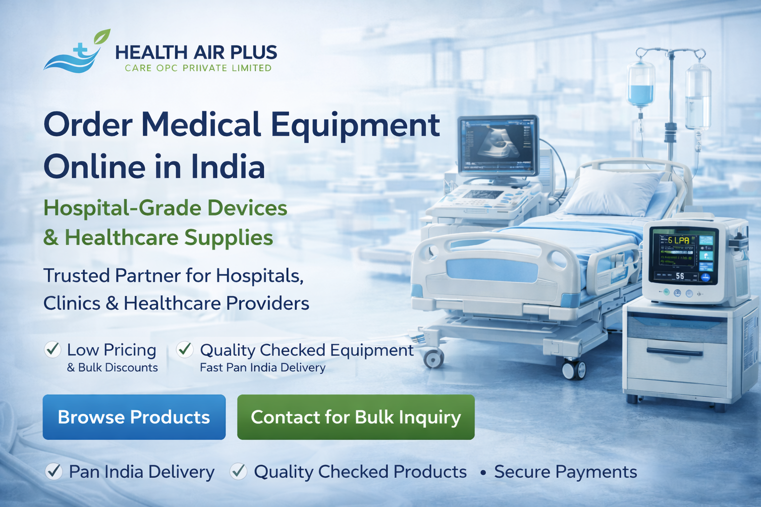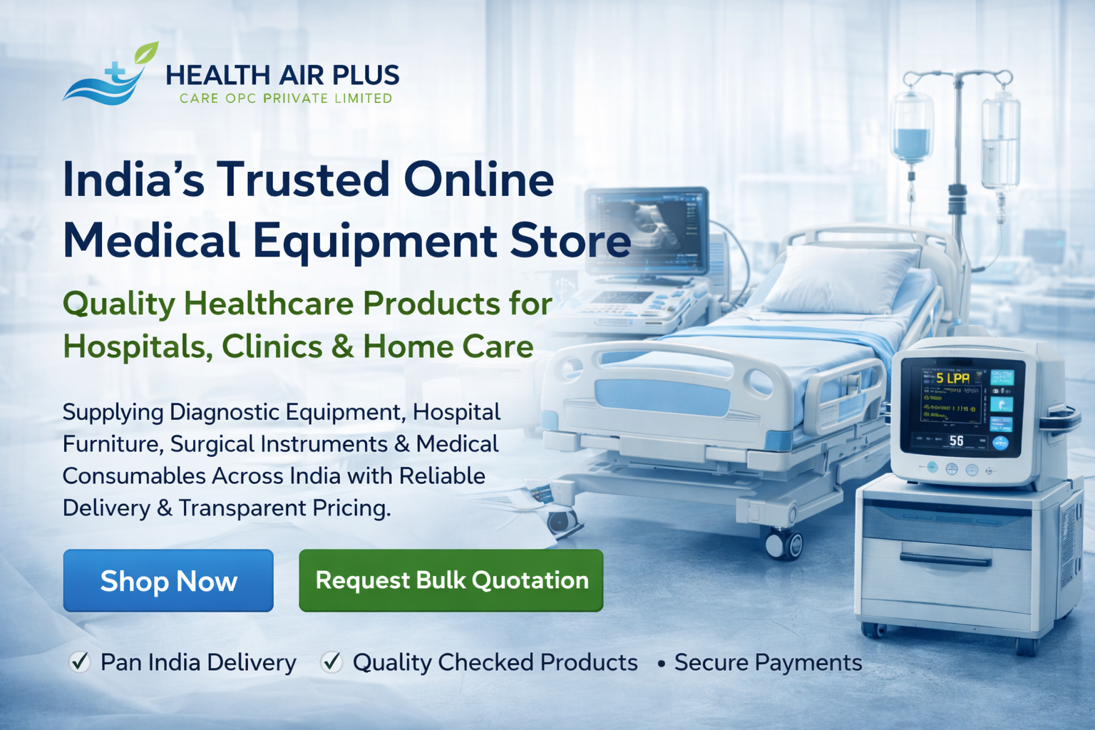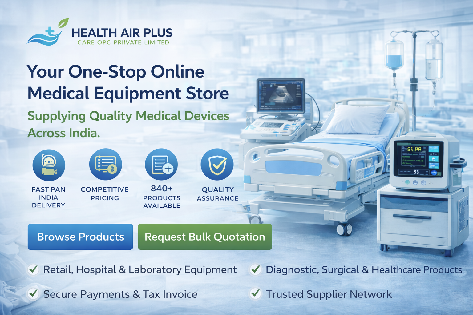 Health Air Plus Care is a reliable online medical equipment supplier serving hospitals, clinics, nursing homes, diagnostic centers, and individual customers across India.